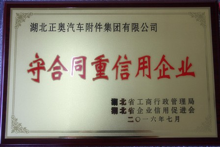 湖北正奧汽車附件集團有限公司榮獲2014--2015年度省級 “守合同重信用企業(yè)”榮譽稱號,此次評選省級“守合同重信用企業(yè)”是由湖北省工商行政管理局和湖北省行業(yè)信用促進會聯(lián)合評選并授予,此次獲獎也是我公司連續(xù)多年獲得“守合同重信用企業(yè)”稱號。