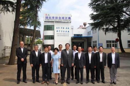 豐田合成株式會社于1949成立于日本愛知縣,是日本豐田汽車公司投資的一家全球零部件企業(yè),公司主要生產(chǎn)經(jīng)營汽車密封產(chǎn)品、內(nèi)外裝飾部件、機能部件、安全系統(tǒng)產(chǎn)品等,在全球17個國家/地區(qū)擁有65家集團公司,擁有3萬8千多名員工。其中在中國有13家,分布在天津、廣東、福建、張家港、十堰等地。其中十堰豐田合成正奧于2019年1月與湖北正奧集團合資成立。此行是合資后宮崎社長首次到訪豐田合成正奧。